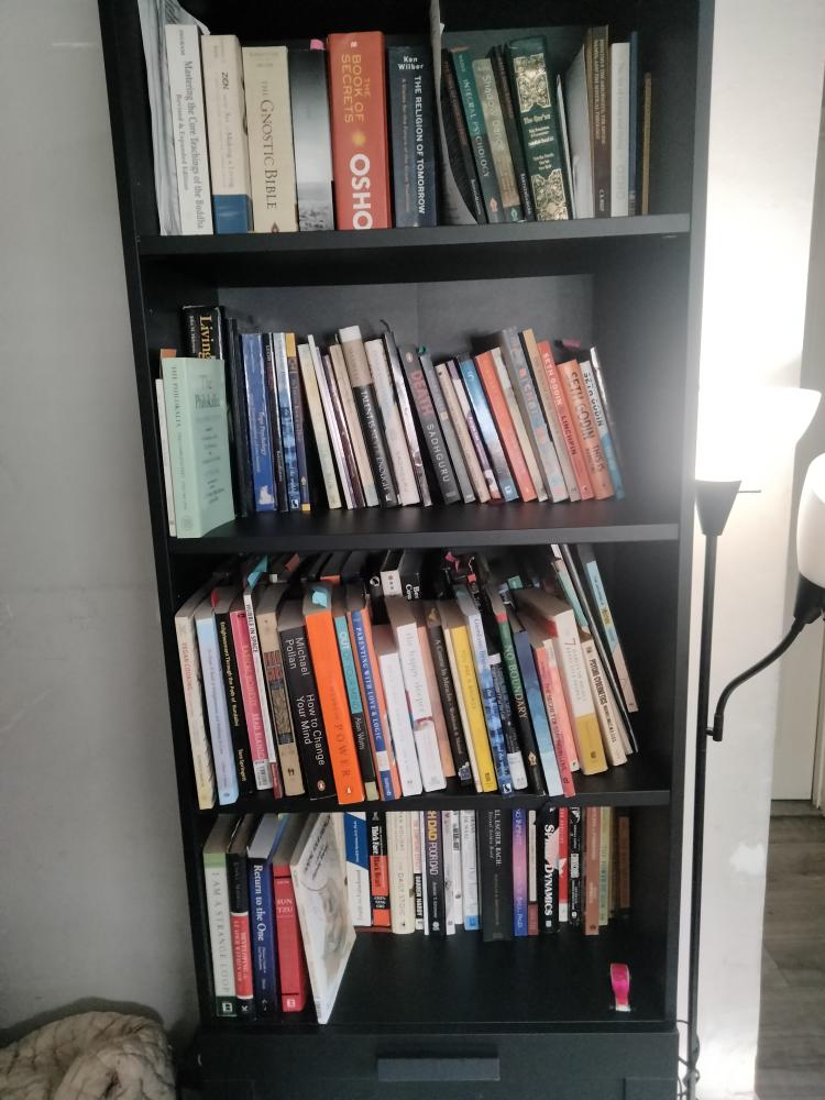 Over a hundred books I'm proud to collected over 10 years , I know this is going to be valuable over my life and I don't just read these books once or twice I go over the multiple times because I know I will have to in order to have a degree of understanding that I may not have at the moment that I read it but I understand how important this is to my life. I even bought a bunch of books from my babies that we read, I'm not reading them Peter Ralston and Ken Wilbur, LOL but I did buy them books on emotions and educational and very simple cognitive development books. My babies are three and they do not have a single iPad or phone, and we monitor screen time. Sucks that the rest of the family like their cousin and other relatives already have iPhones and iPads and they are just sucked on that stuff, not my twins.