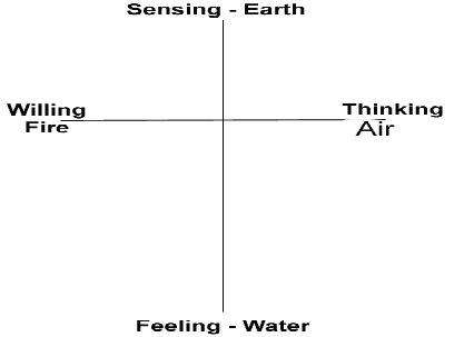 The contents of thinking, feeling and sensing are conscious. Being (deciding = uniting) puts them together in willing. Their continuity, their putting together, changes the data of the functions into data of consciousness ordered in the three spheres.