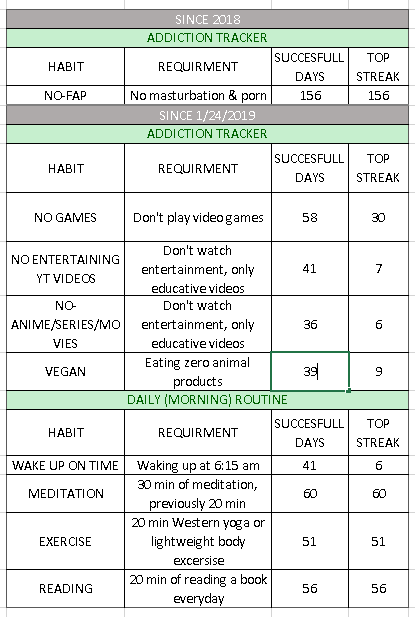 The last weeks I didn't comment on my posts, but now I will. Tomorrow I will upload my Habit streaks for this week.