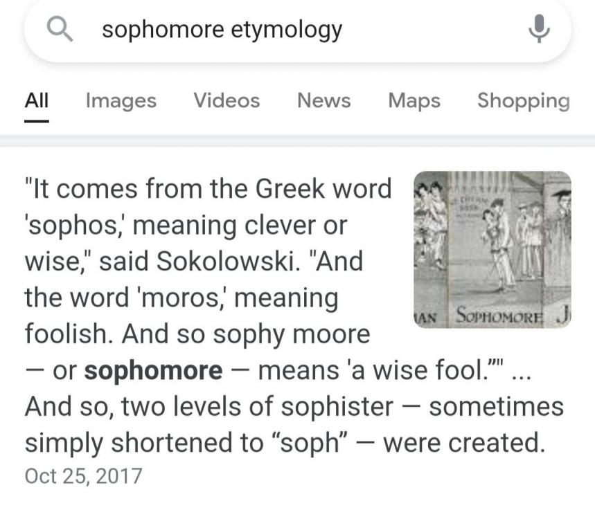 @mmKay I was familiar with the "wise fool" concept from Jed McKenna, but never connected it with sophomore. That is a cool connection. But Jed McKenna uses it in the opposite sense. He uses it as a label for enlightenment. So paradoxically, the enlightened are wise fools, the rest are just plain fools ;)