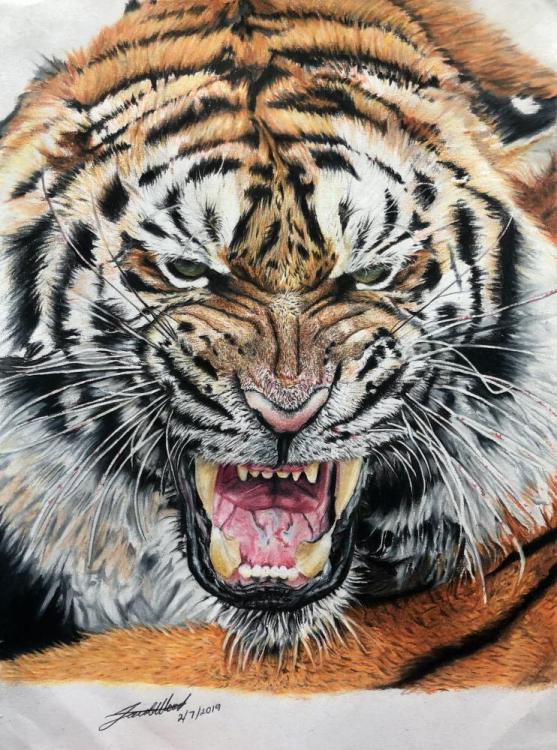Posted February 4, 2020 First attempt at hyper realism drawing. I completed this Siberian Tiger early last year using Prisma colour pencils on A4 paper. Share this post Link to post Share on other sites